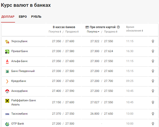 По данным сайта Минфин,  доллар в кассах банков продавали/покупали в среднем за 27.350/27.600 грн.