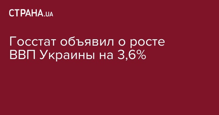 Государственная служба статистики Украины заявила о том, что в апреле-июне 2018 года реальный валовой внутренний продукт страны (ВВП) по предварительным данным увеличился на 3,6% по сравнению с аналогичным периодом 2017 года.