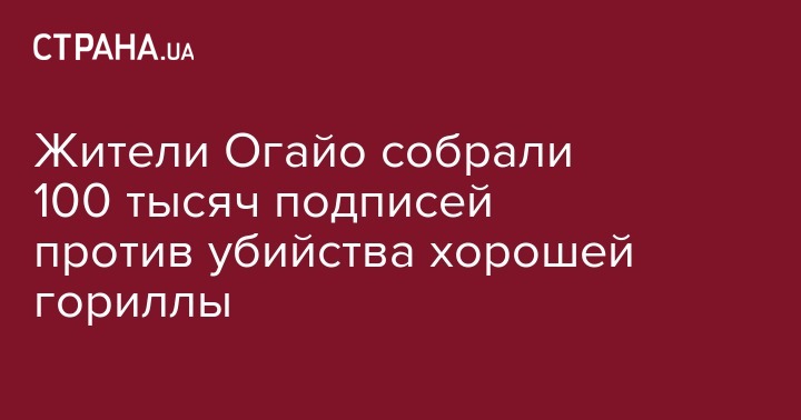 Жители Огайо собрали 100 тысяч подписей против убийства хорошей гориллы