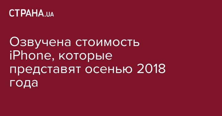 Аналитическая компания TrendForce назвала цены новых iPhone, которые будут представлены осенью 2018 года. Об этом сообщается на сайте компании.