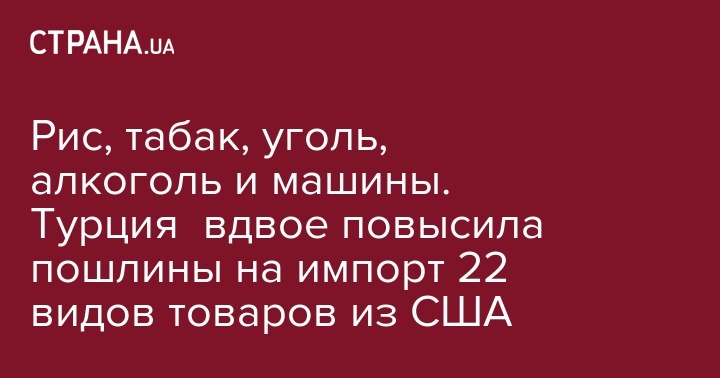 Рис, табак, уголь, алкоголь и машины. Турция вдвое повысила пошлины на импорт 22 видов товаров из США