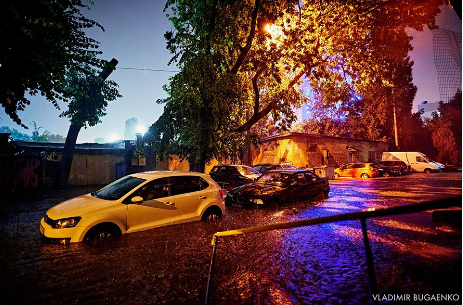 "Ночная прогулка была интересной! Иногда я даже рад, тому что обрабатываю ночью. Таких потоков давно не видел! Даже дерево приплыло, а градом разнесло несколько вывесок. Красиво и стремно одновременно! Кое-где глубина была по пояс", - написал фотограф Владимир Бугаенко.