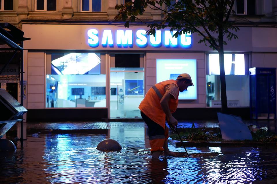 Ночью в центре Киева бушевала гроза. Улицы превратились в реки.