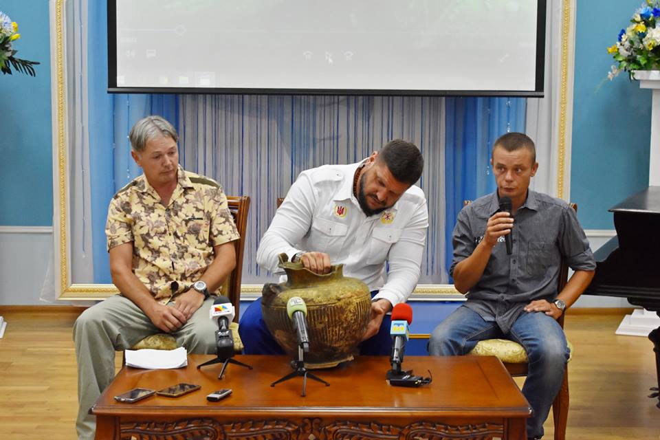 Савченко встретился с археологами в местном музее после поднятия со дна акватории Кинбурнской косы древнегреческого ритуального сосуда.