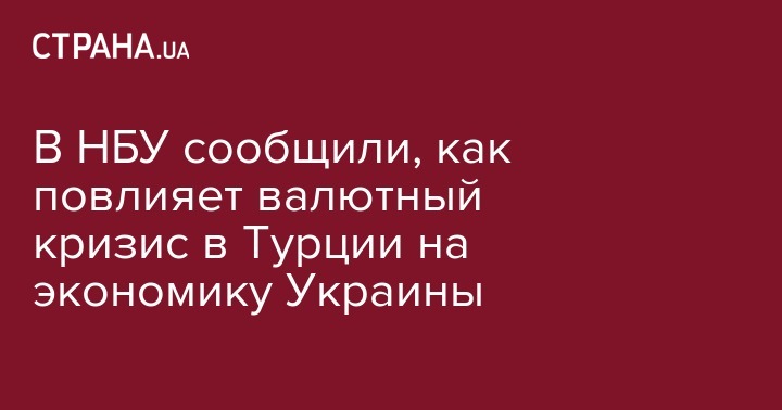 По оценкам центробанка, со временем украинская экономика может опосредованно почувствовать последствия ситуации в Турции через внешнюю торговлю, поскольку Турция является одним из крупнейших рынков сбыта украинской продукции (6,4% отечественного товарного экспорта в 2017 году).