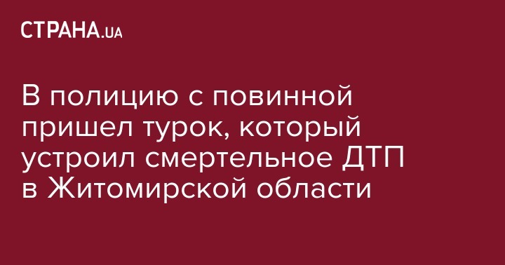 Гражданин Турции, который скрылся после смертельного ДТП в Житомирской области, обратился в полицию с признанием в причастности к аварии. Сама трагедия произошла 15 августа в Брусиловском районе Житомирской области, в результате ДТП погибли два человека.
