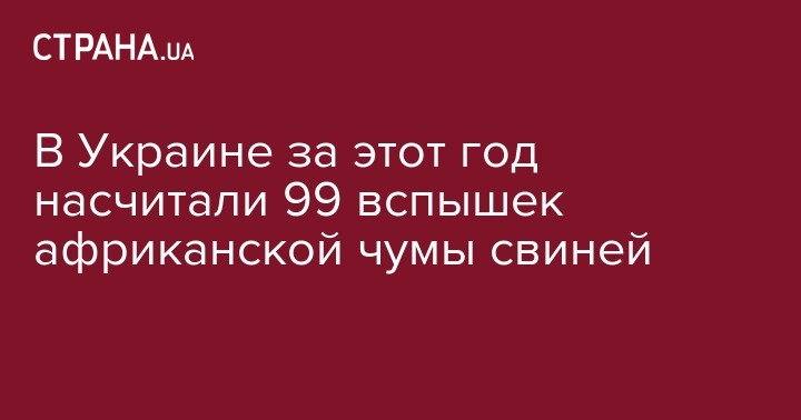С начала текущего года в Украине специалисты выявили 99 вспышек африканской чумы свиней (АЧС). Об этом свидетельствуют данные сайта "СТОП АЧС", который введен в рамках проекта технической помощи ФАО "Развитие потенциала раннего выявления и реагирования на африканскую чуму свиней в Украине".
