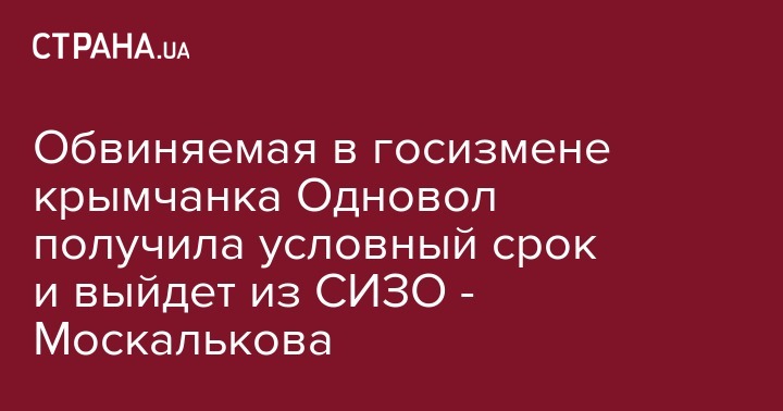 "Переговорила по телефону с украинским омбудсменом Людмилой Денисовой. Она сообщила, что в отношении Елены Одновол вынесено судебное решение об осуждении ее на три года условно, она будет освобождена из СИЗО", - рассказала Москалькова вчера, 16 августа.