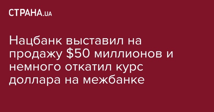 Национальный банк Украины объявил аукцион по продаже до 50 млн долларов на межбанковском валютном рынке. Об этом говорится в сообщении пресс-службы НБУ.