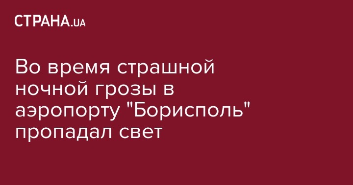 В ответ на запрос "Страны" руководство аэропорта "Борисполь" подтвердило, что около 3 часов ночи 16 августа из-за грозы пропадало электричество. Но, по их словам, прерывание электроснабжения продлилось всего 0,5 секунд и не повлияло на отправку авиарейсов.
