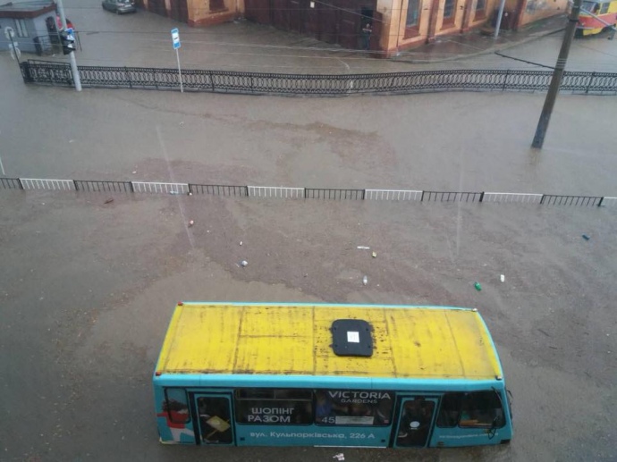 Как сообщает местное издание 032.ua, уровень воды достиг метра на улице Сахарова. На перекрестке остановились автобусы, в которых из-за подтопления заблокированы пассажиры.