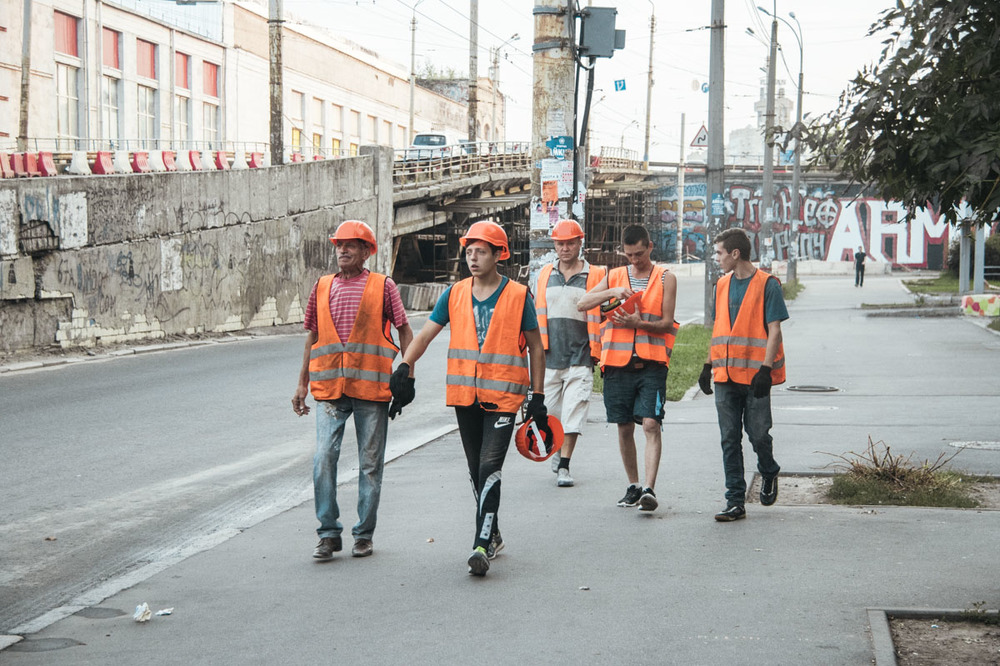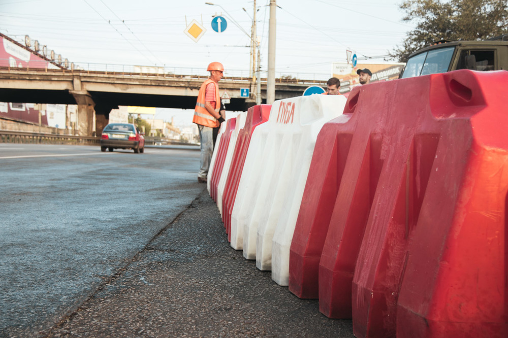 Закрытие моста началось в шесть утра. Рабочие оградили путепровод конусами, а позже поставили по краям моста и на прилегающей территории специальные заградители. Все это время на мосту дежурили три патрульных авто и карета скорой помощи.