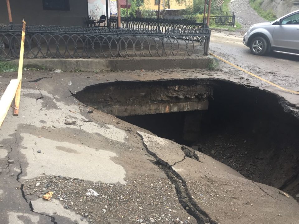 Из-за сильнейшего дождя, который вечером 17 августа накрыл Рахов, обвалилось бетонное покрытие моста на дороге Рахов - Косовская Поляна - Кобылецкая Поляна.