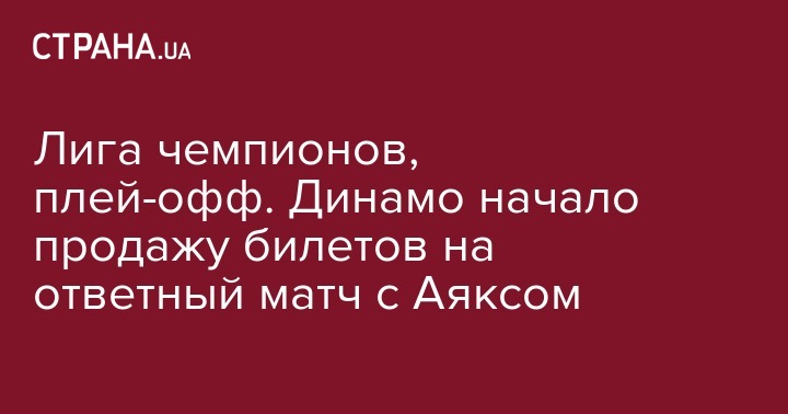 Лига чемпионов, плей-офф. Динамо начало продажу билетов на ответный матч с Аяксом