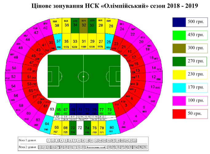 На игру доступны билеты следующих ценовых категорий: 50, 100, 170, 230, 270, 300, 450 и 500 гривен, передает официальный сайт Динамо.
