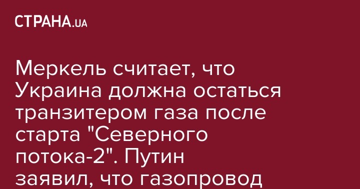Меркель считает, что Украина должна остаться транзитером газа после старта "Северного потока-2". Путин заявил, что газопровод не угрожает Украине