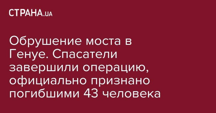 В Италии завершилась спасательная операция по поиску жертв под завалами автомобильного моста в Геную. Об этом передает агентство Reuters.
