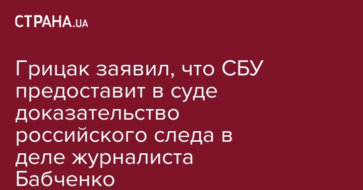 Сотрудники СБУ продолжают работу по установлению заказчиков в деле попытки убийства в Киеве российского оппозиционного журналиста Аркадия Бабченко. Как заявил глава ведомства Василий Грицак, на судебных заседаниях будут предоставлены доказательства российского следа в этом преступлении, передает Интерфакс.