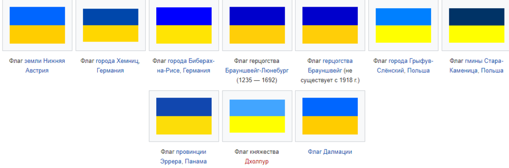 Кстати, сине-желтые полотна с вариацией в оттенках используют разные города и герцогства в Европе и несколько населенных пунктов в Панаме и Индии.