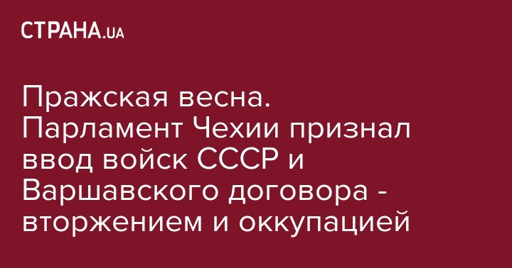 Нижняя палата (палата депутатов - Прим.Ред.) парламента Чехии дала свою оценку событиям "Пражской весны" 1968 года, когда коалиция Варшавского договора, во главе с СССР, ввела войска на территорию Чехословакии (ЧССР) и подавила мирные акции в поддержку либеральных реформ.