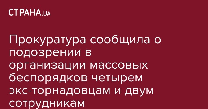 Прокуратура сообщила о подозрении экс-командиру и трем бывшим бойцам спецроты "Торнадо", а также двум сотрудникам Лукьяновского следственного изолятора (Киевское СИЗО) в организации массовых беспорядков 9 августа. Об этом говорится в сообщении пресс-службы ГПУ.