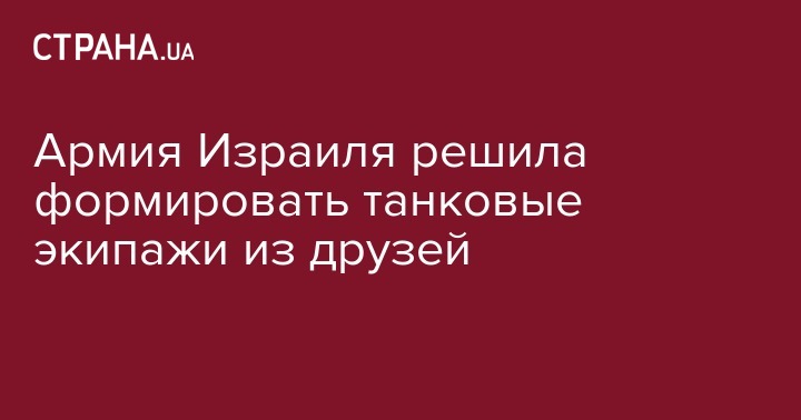 Армия обороны Израиля (ЦАХАЛ) намерена провести эксперимент, формируя танковые экипажи и некоторые другие подразделения из друзей и подруг военнослужащих. Об этом информирует портал newsru.