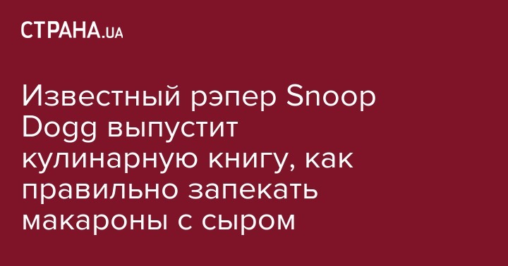 Американский рэпер Snoop Dogg анонсировал выход своей первой кулинарной книги "Рецепты от пройдохи" (From Crook to Cook). Об этом он сообщил на своей странице в Instagram.