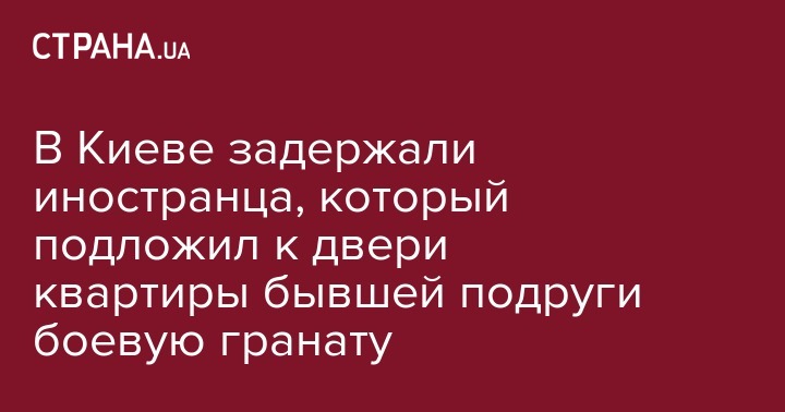 Правоохранители задержали в Киеве иностранного гражданина, который подозревается в том, что угрожал своей бывшей сожительнице, в частности, оставил у двери ее квартиры приведенную в боевую готовность гранату.
