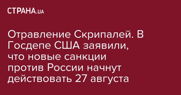 "США 6 августа в рамках соблюдения американского "Закона о контроле над химическим и биологическим оружием и запрете его применения" от 1991 года пришли к выводу о том, что правительство России использовало химические или биологические вооружения в нарушение международного права или использовало против собственных граждан смертоносные химические или биологические вооружения, - сказал представитель внешнеполитического ведомства. - 8 августа мы оповестили Конгресс о своем намерении ввести несколько видов санкций в отношении России, как того требует закон, включая прежде всего применение презумпции отказа в предоставлении доступа к чувствительным товарам и технологиям сферы национальной безопасности, имеющим американское происхождение".