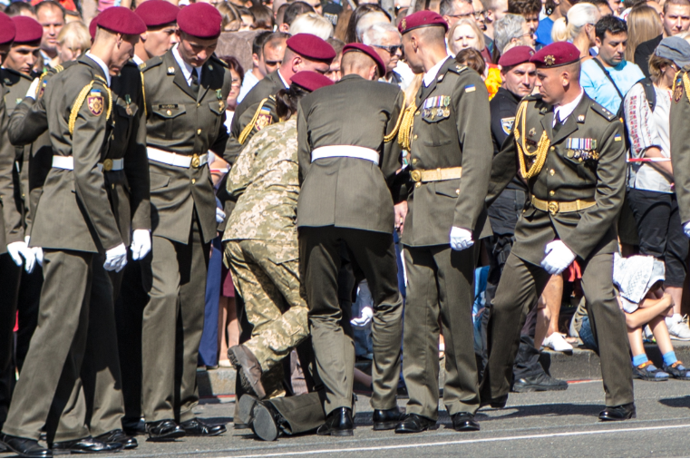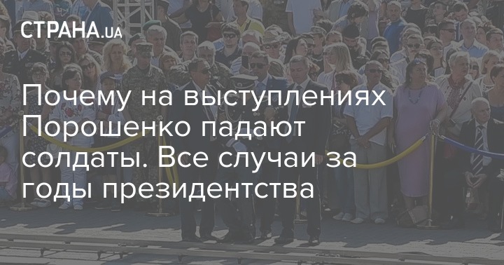 На сегодняшнем параде на Крещатике сразу два солдата потеряли сознание. Один во время речи президента, другой - когда шла минута молчания по погибшим украинцам. Таким образом, уже пять военных упали в обморок при Петре Порошенко за годы его президентства. "Страна" собрала все случаи и разобралась, почему это происходит.