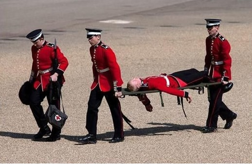 Солдаты падают не только в Украине. Одни из "чемпионов" британские гвардейцы, которые участвуют в разных мероприятиях с королевской семьей.