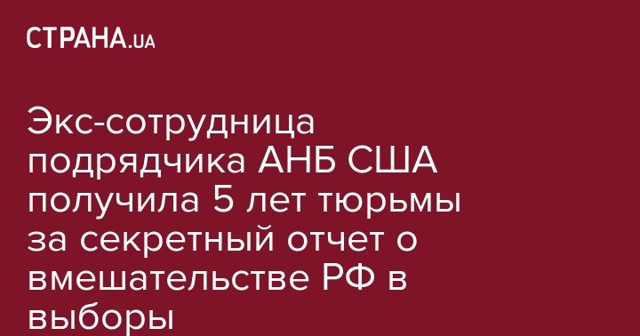 Экс-сотрудница подрядчика АНБ США получила 5 лет тюрьмы за секретный отчет о вмешательстве РФ в выборы