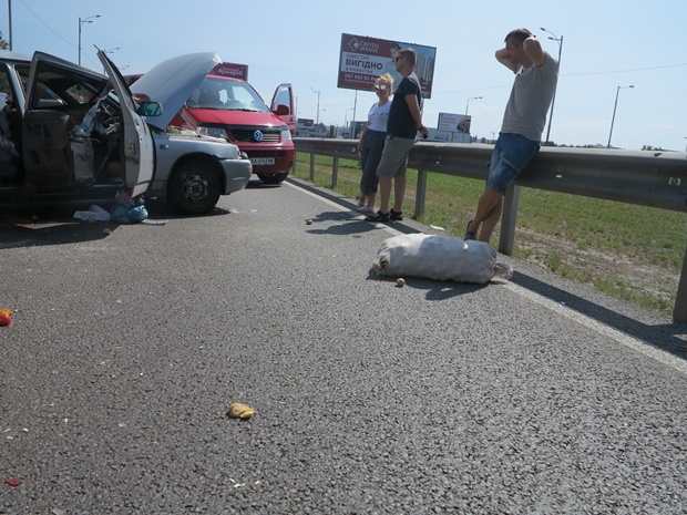 Удар был таким, что из плотно загруженной машины вылетели продукты. Мешок с картошкой оказался в нескольких метрах. Загруженный багажник принял на себя основной удар и по сути спас людей. В салоне "Лады" было четверо взрослых и годовалый ребенок. После такого удара госпитализирована одна женщина, остальные отделались сильным стрессом.