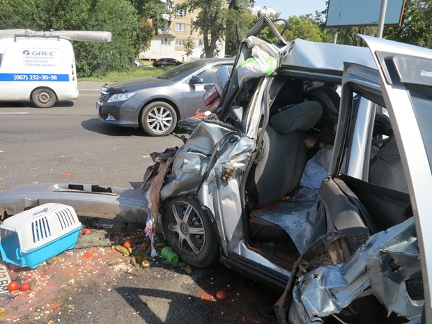 Мащины направлялись в сторону проспекта Победы. Водители, двигавшиеся впереди, притормозили и это, похоже, стало неожиданностью для водителя грузовика. Он на полном ходу врезался в "Ладу".