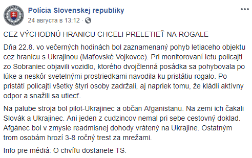 Во время задержания, пилот сопротивлялся, поэтому к нему пришлось применить силу. После украинца доставили в больницу. Афганца сразу же вернули в Украину согласно правилам реадмиссии, а украинцу и словаку грозит от 3-х до 8-ми лет тюрьмы за перевозку нелегалов.