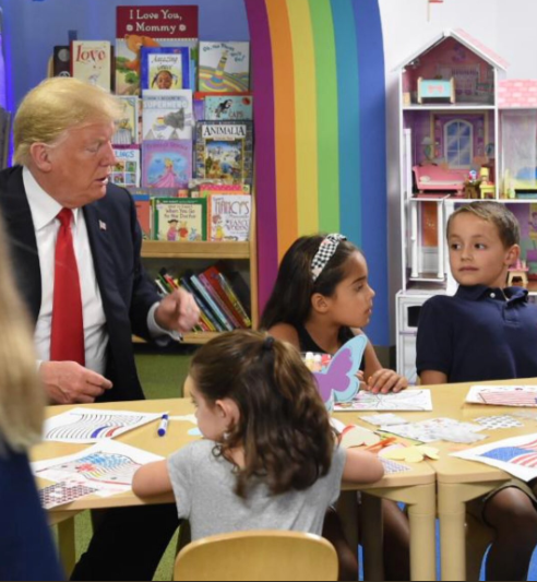 Трамп с женой Меланией приехали в детскую больницу в Колумбусе в штате Огайо. Целью поездки было привлечение внимания к проблеме опиоидного кризиса в США. В больнице Трамп вместе с детьми занимался рисованием, в частности, раскрашивал раскраски. Тут пользователи сети и увидели новую странность.