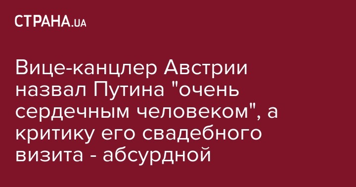 Критика приезда президента РФ Владимира Путина на свадьбу главы МИД Австрии является абсурдной. Об этом вице-канцлер Австрии и председатель ультраправой Партии свободы  Хайнц-Кристиан Штрахе заявил в интервью австрийскому изданию Die Presse.