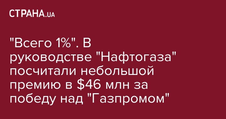 "Всего 1%". В руководстве "Нафтогаза" посчитали небольшой премию в $46 млн за победу над "Газпромом"
