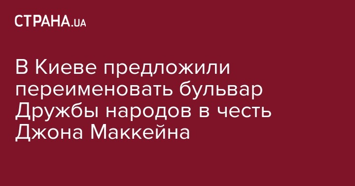 В Киеве предложили переименовать бульвар Дружбы народов в честь Джона Маккейна