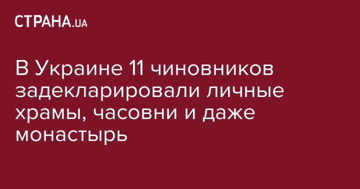 В Украине 11 чиновников задекларировали личные храмы, часовни и даже монастырь