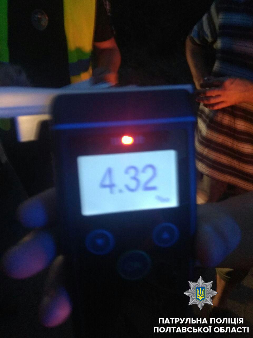 В Полтавской области патрульные полицейские остановили водителя, содержание алкоголя в крови которого превышало норму в 21 раз. На него составлен административный протокол. Об этом сообщает пресс-служба патрульной полиции Полтавской области.