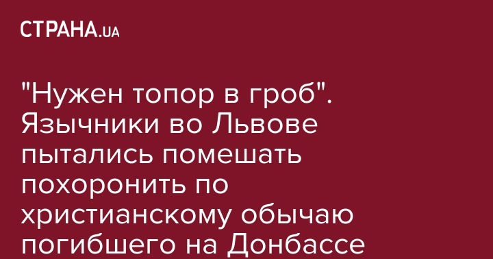 В минувшее воскресенье, 26 августа, во Львове, во время похорон погибшего на Донбассе Марьяна Найды произошел дикий инцидент. Несколько десятков молодых людей в черных футболках пытались помешать захоронению погибшего бойца по христианским канонам. Судя по всему это были представители языческих верований, которые сейчас популярны в среде украинских националистов.