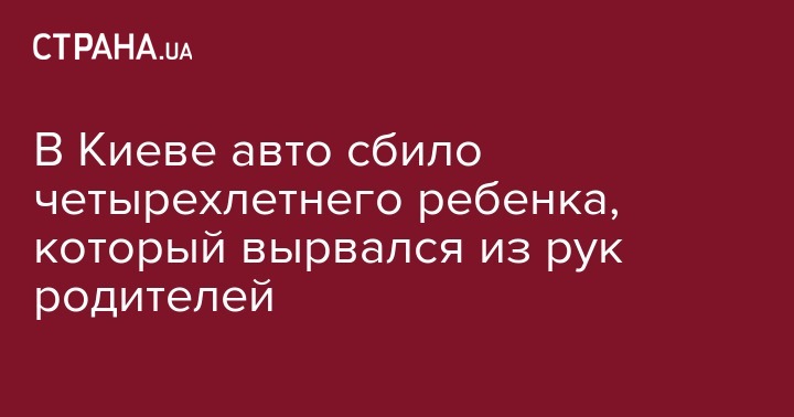 Вечером в понедельник, 27 августа, на улице Бойченко в Киеве легковой автомобиль сбил четырехлетнего ребенка. Перед этим он вырвался из рук родителей и выбежал на проезжую часть.