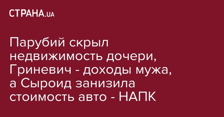 Парубий скрыл недвижимость дочери, Гриневич - доходы мужа, а Сыроид занизила стоимость авто - НАПК