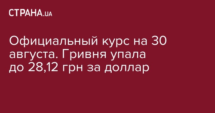 Официальный курс на 30 августа. Гривня упала до 28,12 грн за доллар