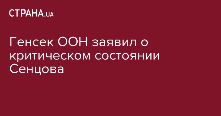 Генеральный секретарь ООН Антонио Гуттереш заявил, что украинский политзаключенный Олег Сенцов находится в критическом состоянии. Гуттереш обеспокоен состоянием здоровья украинца, у которого на 109 день наблюдаются дистрофия, анемия и гипоксия. Об этом заявил официальный представитель главы ООН Стефан Дюжаррик на телеканале "Прямой".