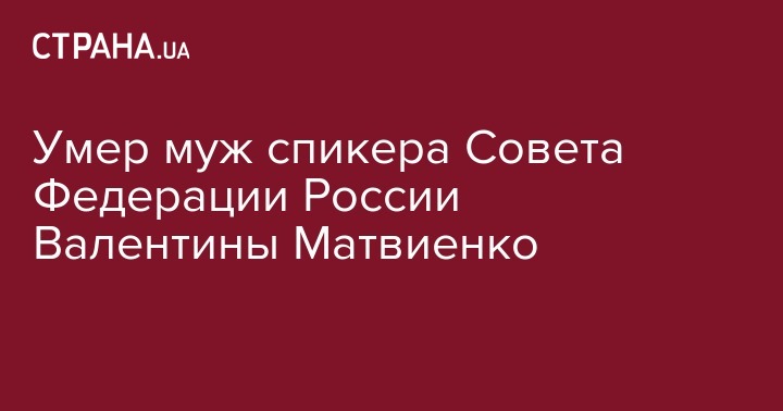 Умер муж спикера Совета Федерации России Валентины Матвиенко