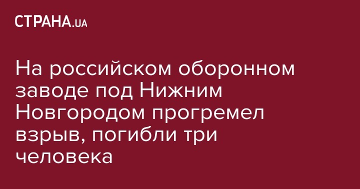 На российском оборонном заводе под Нижним Новгородом прогремел взрыв, погибли три человека