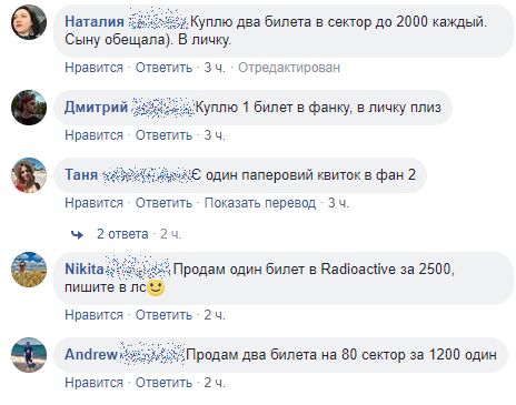 В интернете запросов на покупку билетов гораздо больше, чем предложений. Отсюда и высокие цены. Так, в комментариях к странице концерта на Facebook билеты предлагаются по цене 2,5-3 тысячи гривен.