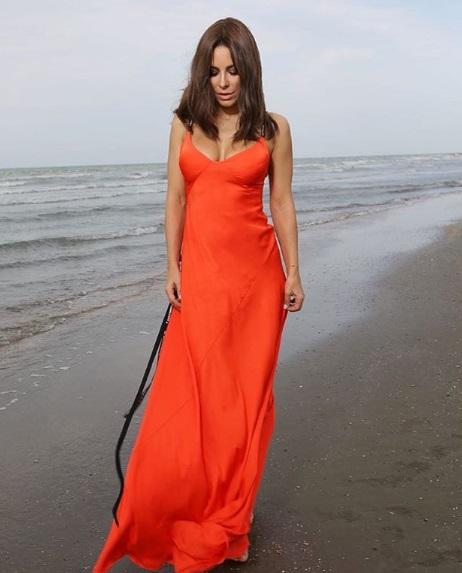 Появилось фото, как Ани Лорак в коралловом платье скромно замечталась на берегу моря